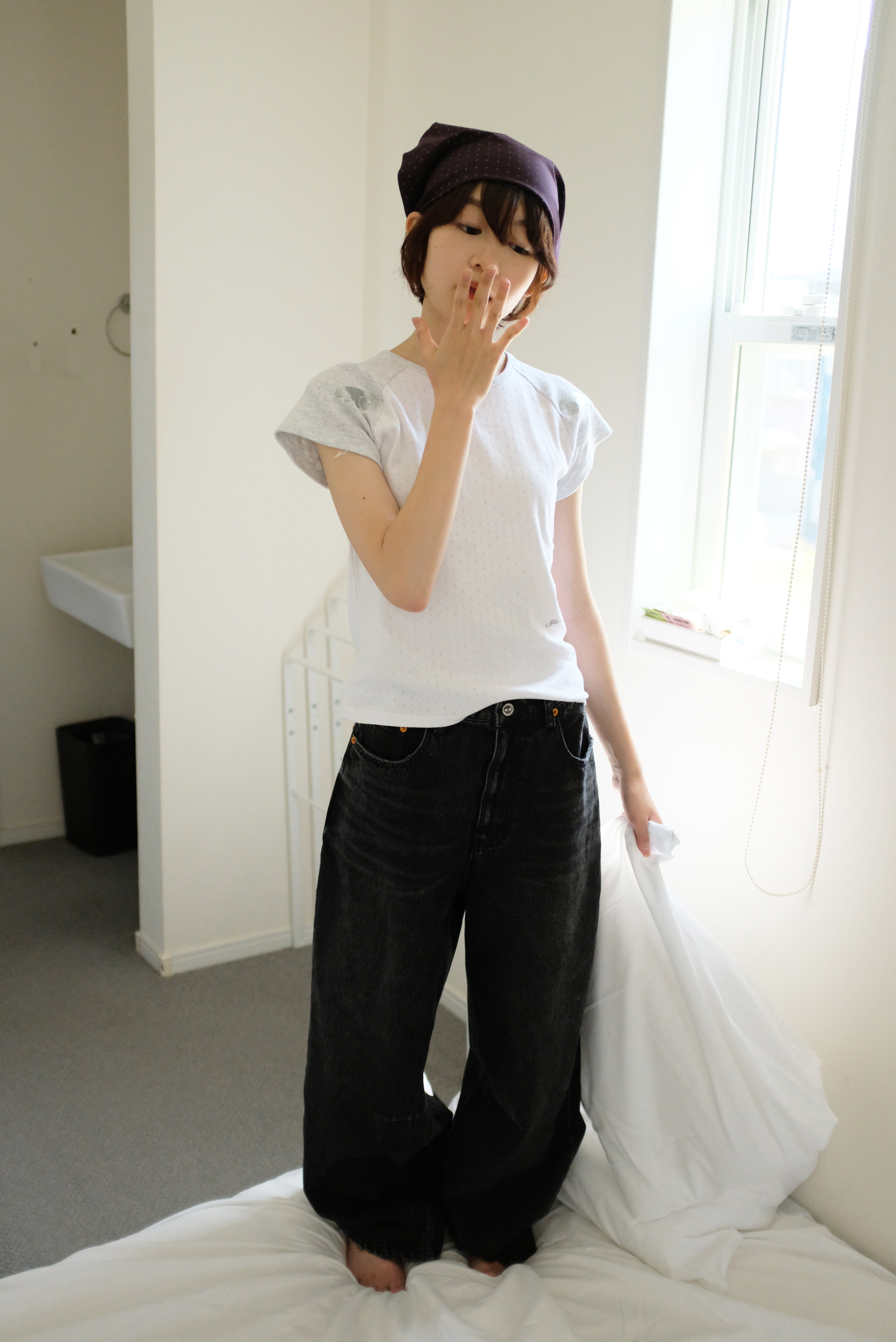 These denim pants are made in a loose and wide fit to give you a unique mood of YIH.