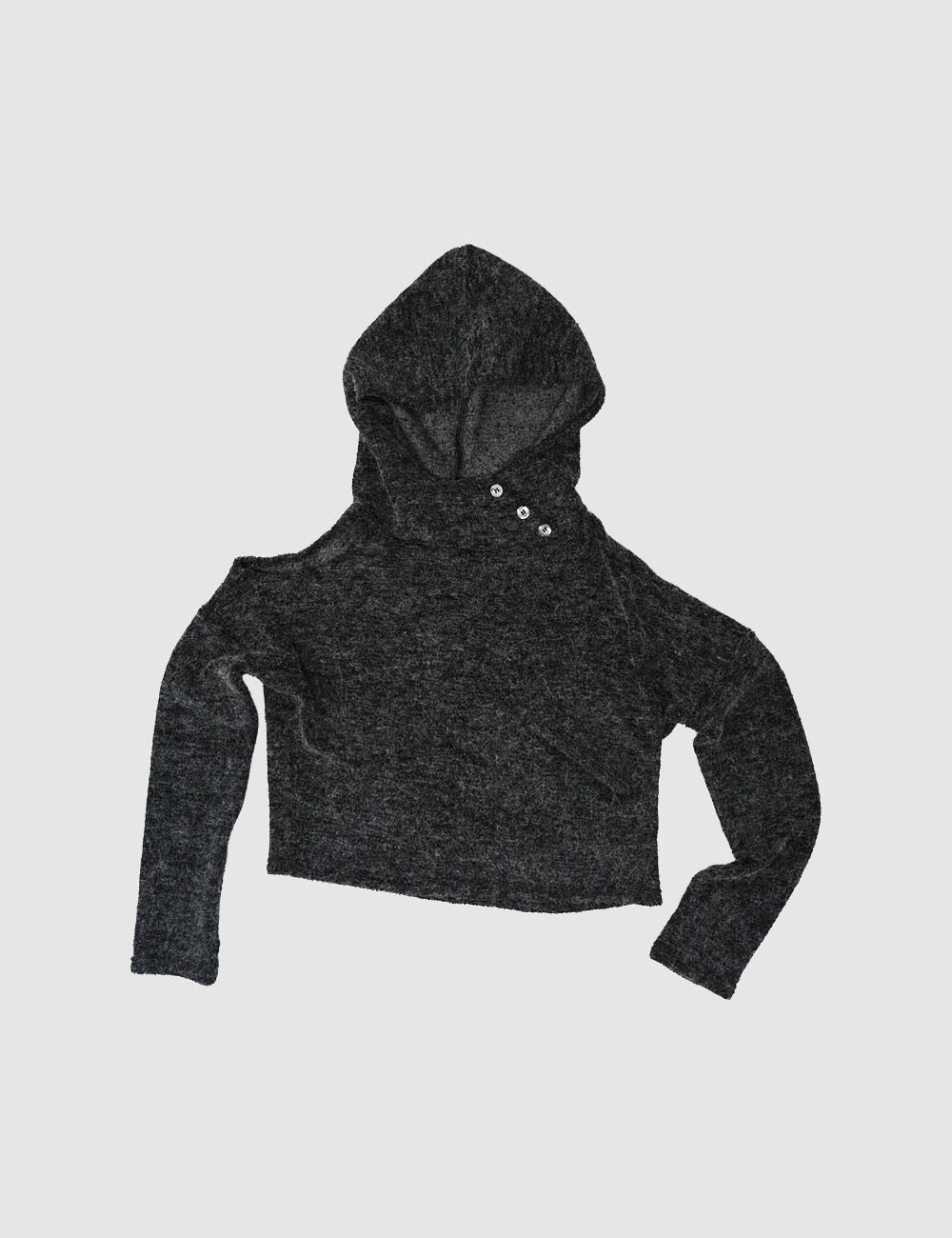 Knit shoulder hoodie, charcoal